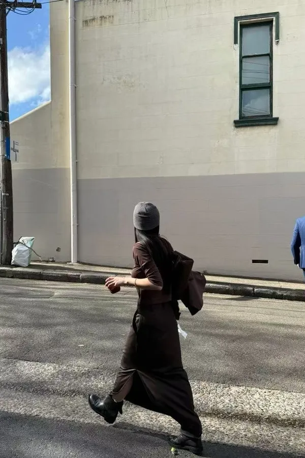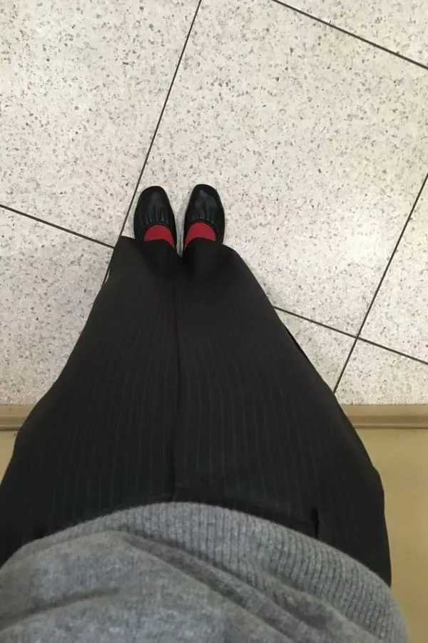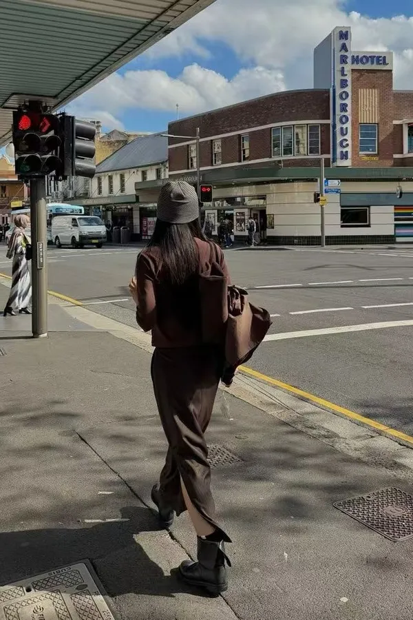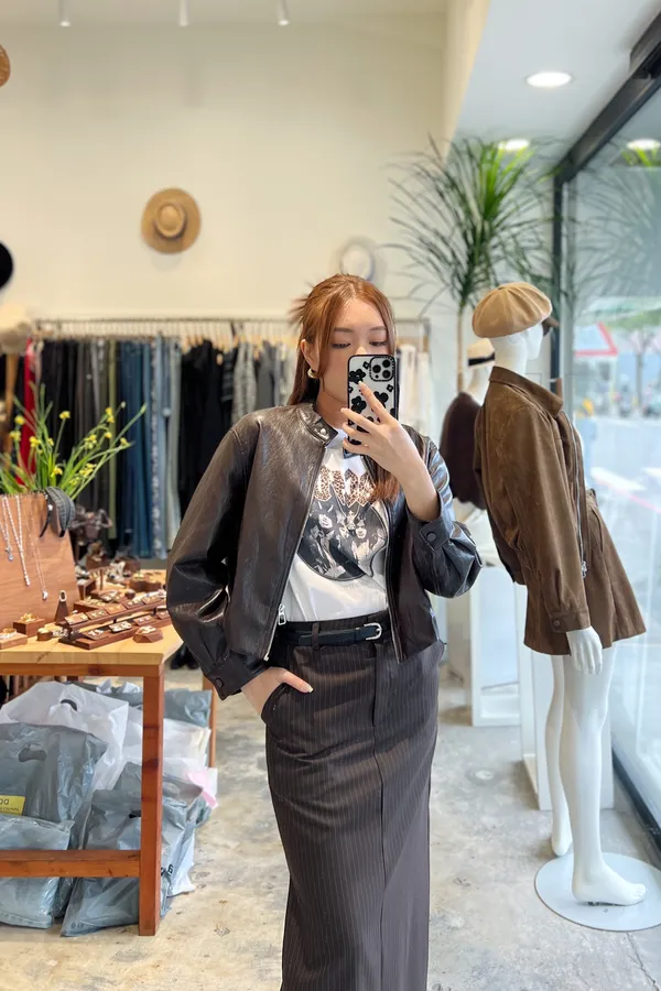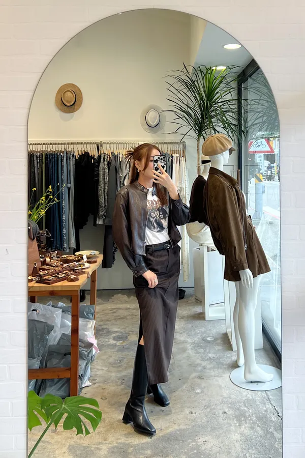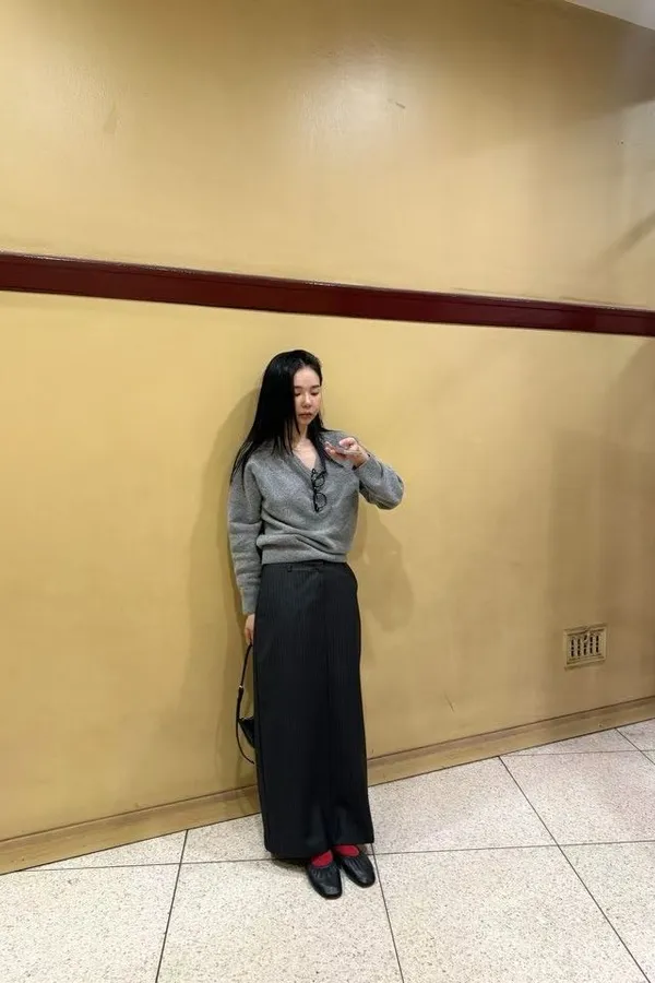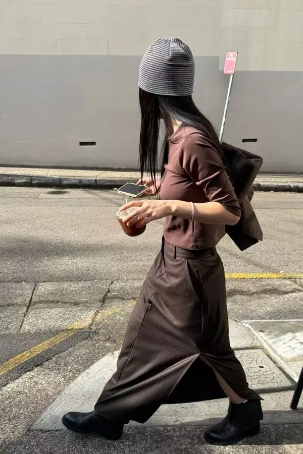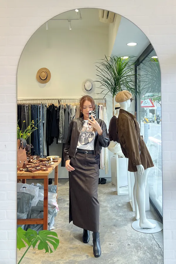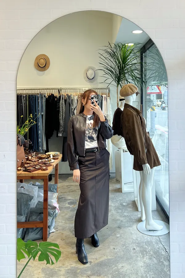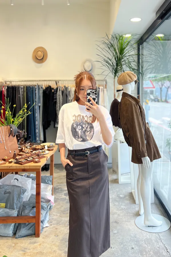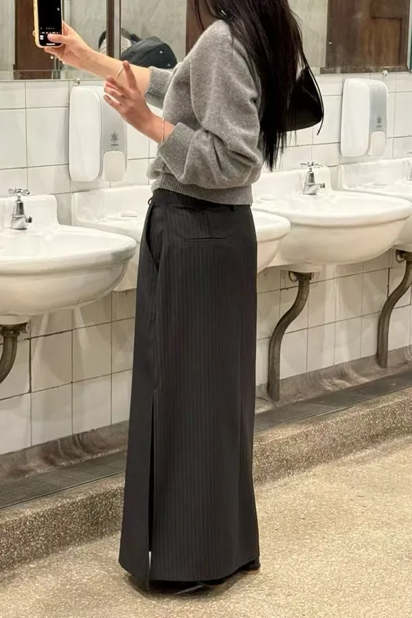 俐落直紋側開岔西裝直筒長裙